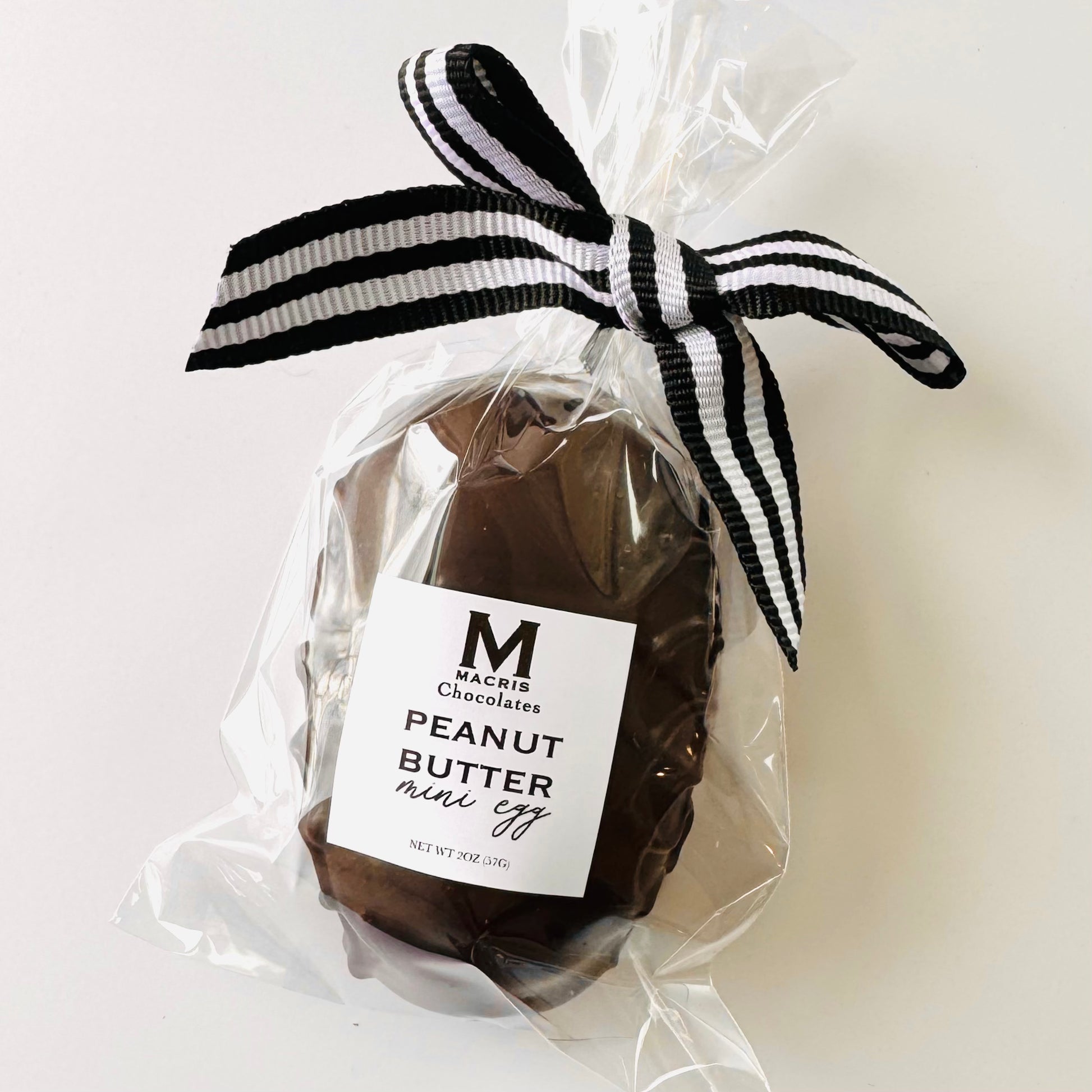 Our Dark Chocolate Peanut Butter Mini Egg combines the rich intensity of dark chocolate with the deep, roasted flavor of freshly ground peanut butter. We roast our peanuts in-house and grind them into a chunky, rustic spread that’s full of character—no overly smooth, processed filling here.