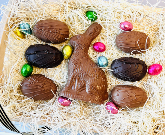 Indulge in the ultimate mini egg assortment for everyone with our Benjamin Bunny's Basket. Choose the delicious flavors of made-from-scratch buttercream, peanut butter, and coconut eggs, paired with your very own milk or dark chocolate bunny. A perfect combination of taste and tradition.