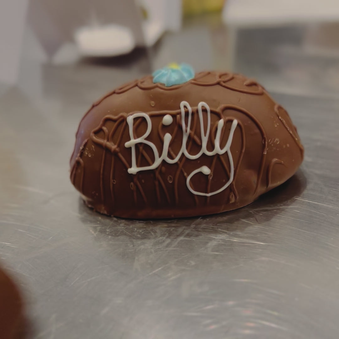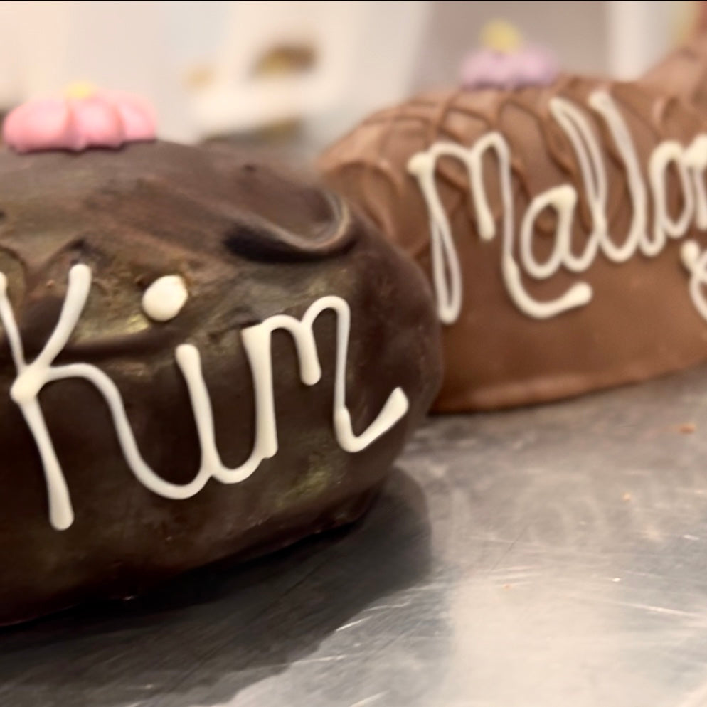 Just tell us the name you'd like added (up to 15 characters), and we'll hand-pipe it in chocolate with care. It's a simple, heartfelt detail that turns a treat into a treasured memory.